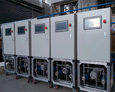 公司自主研發的施肥機由控制櫃、外部電氣設備和施肥硬件設備三部分組成。控制櫃櫃體上裝有一塊10寸觸摸屏,屏幕右側爲急停按鈕。外部電氣設備包括電機、電動球閥、傳感器等。施肥硬件設備包括注肥桶、過濾器、攪拌機等