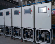 公司自主研發的施肥機由控制櫃、外部電氣設備和施肥硬件設備三部分組成。控制櫃櫃體上裝有一塊10寸觸摸屏,屏幕右側爲急停按鈕。外部電氣設備包括電機、電動球閥、傳感器等。施肥硬件設備包括注肥桶、過濾器、攪拌機等