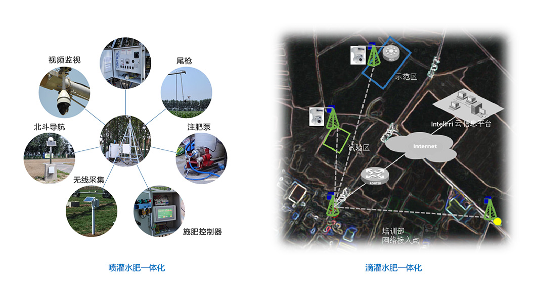 運用物聯網、大數據、雲計算與傳感器技術相結合的方式,對農業生産環境中的大氣溫度、大氣濕度、土壤濕度、土壤濕度、光照強度、作物系數等參數進行實時監控,系統通過分析傳感器的實時數據信息,結合雲平台上設置的預設條件,進行分析并制定灌溉決策,進行自動化智能化灌溉(不同條件下對首部、噴灌機、噴頭陣列等設備的啓閉控制)、施肥系統的控制。